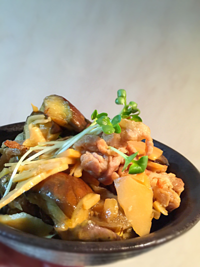 たけのこ、なす、豚肉の甘辛煮を作りました